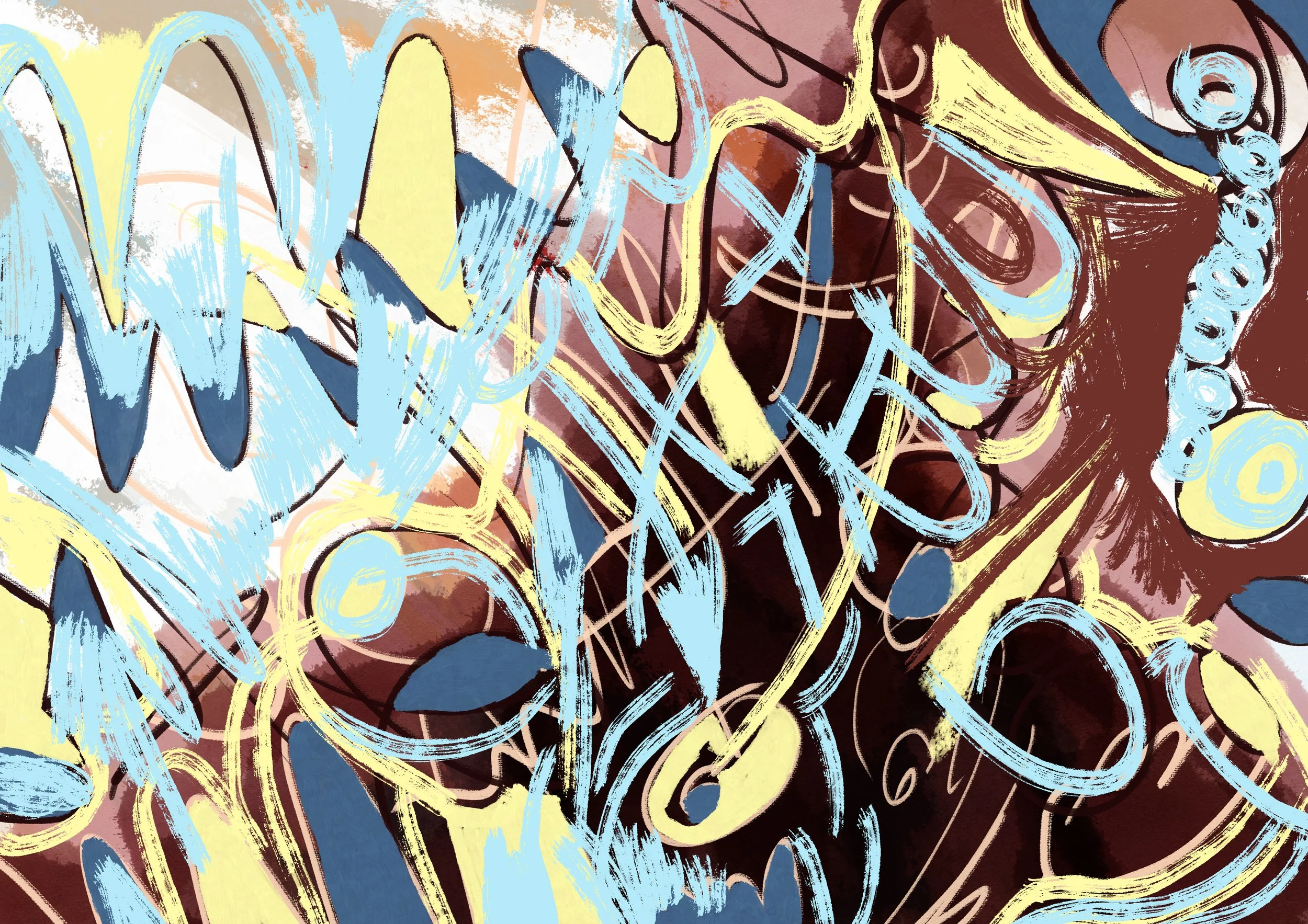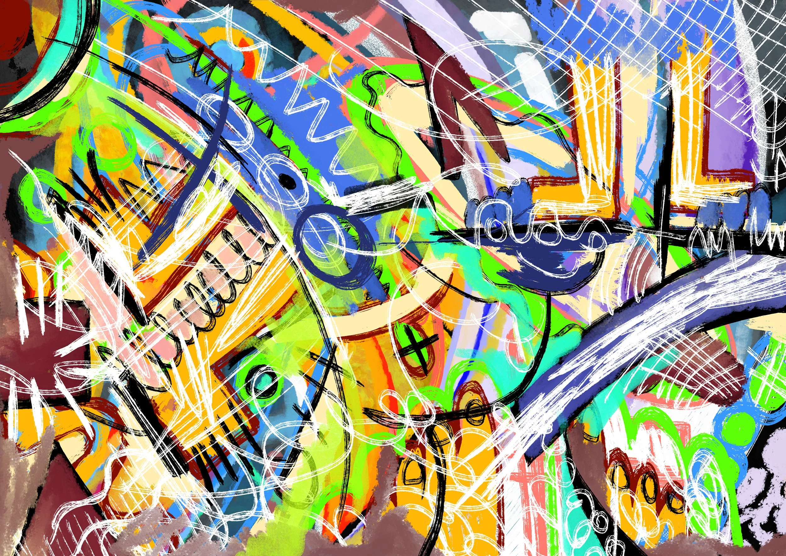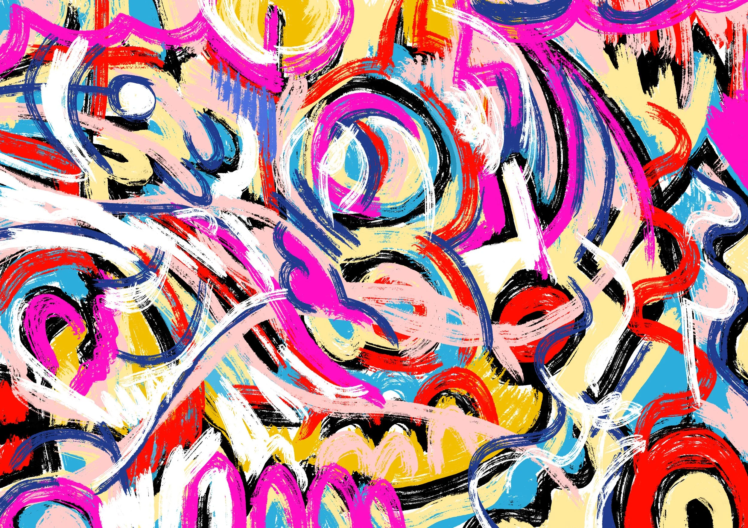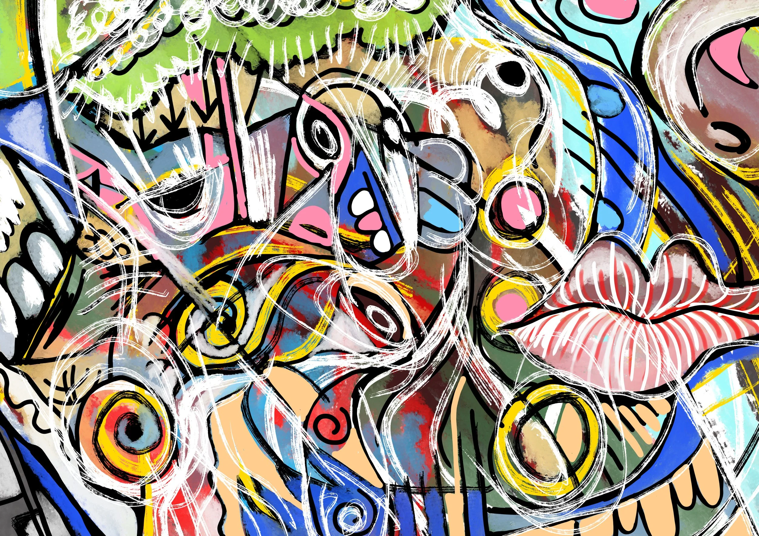 A través de trazos impulsivos, capas superpuestas y una paleta intensa, las obras construyen un espacio donde el orden desaparece y la emoción toma control.Formas orgánicas, símbolos fragmentados y figuras en transformación emergen y se disuelven dentro de una composición inestable, reflejando procesos internos más que estructuras externas.